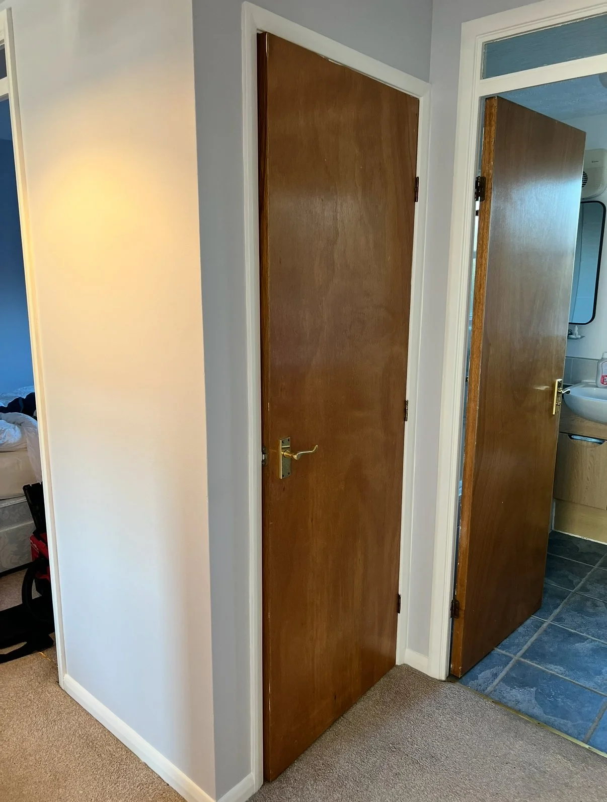 The customer wanted to update the look of their internal doors without replacing them altogether. We opted to paint them in a hard wearing white wood paint and updated the handles to a chrome to give them a more modern clean look.