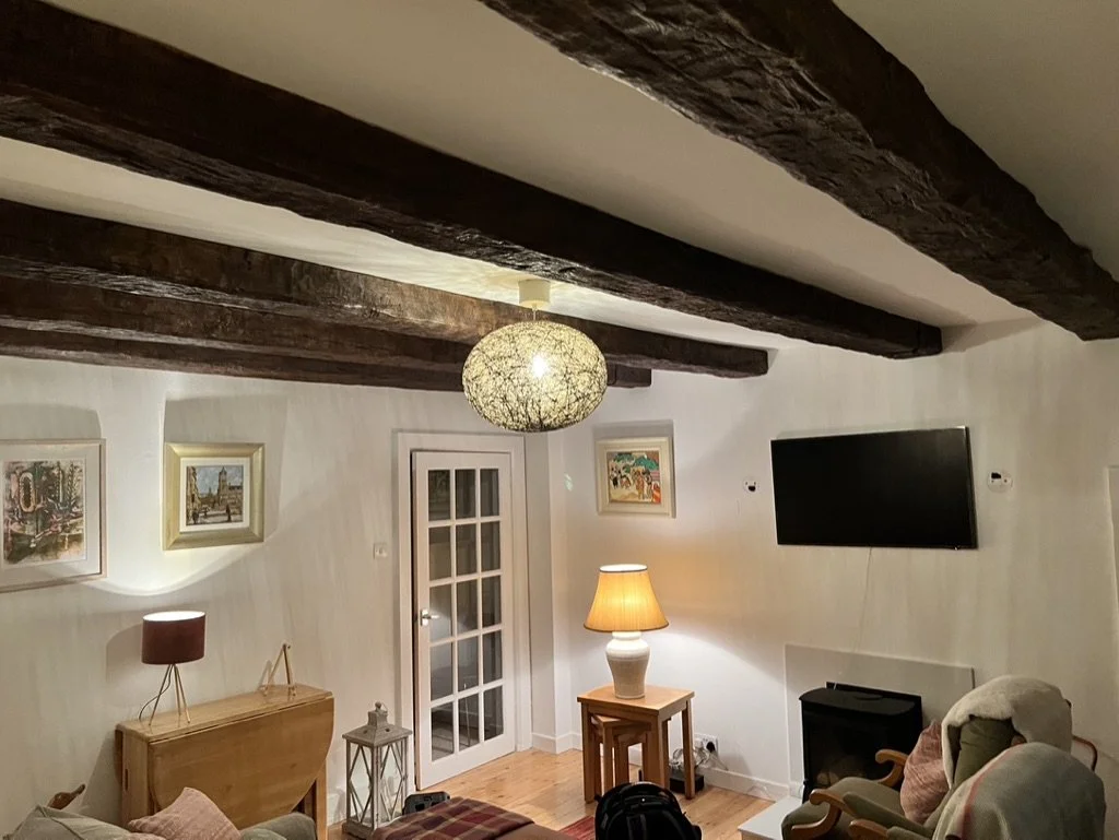 This customer wanted to add some more character to their cottage. We cut and installed these to create a rustic exposed wooden beam traditional ceiling that I am sure you would agree looks fantastic.